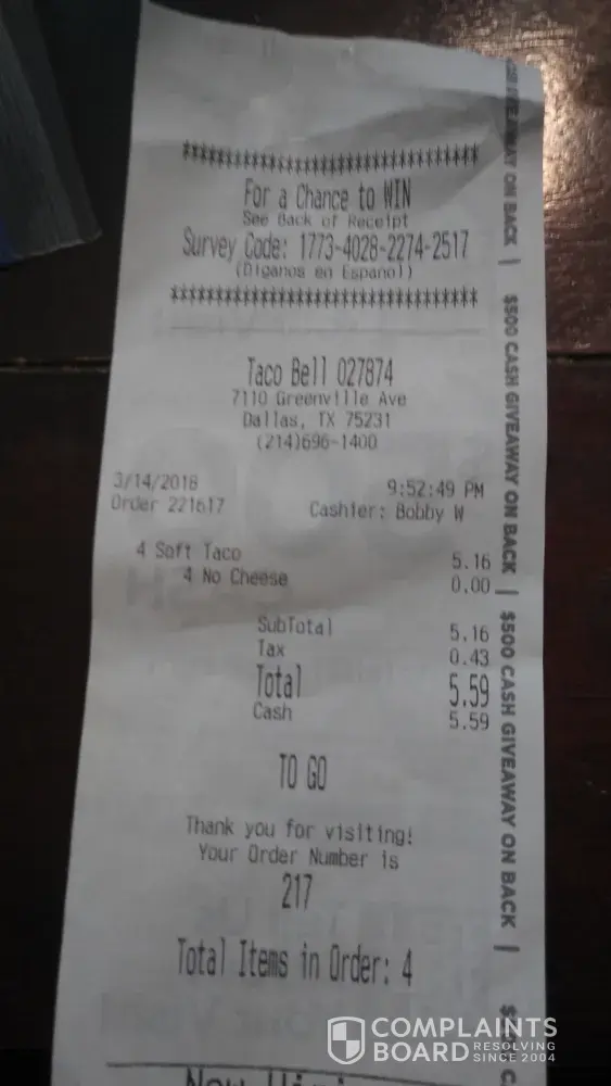 Taco Bell Complaints Page 82 of 124