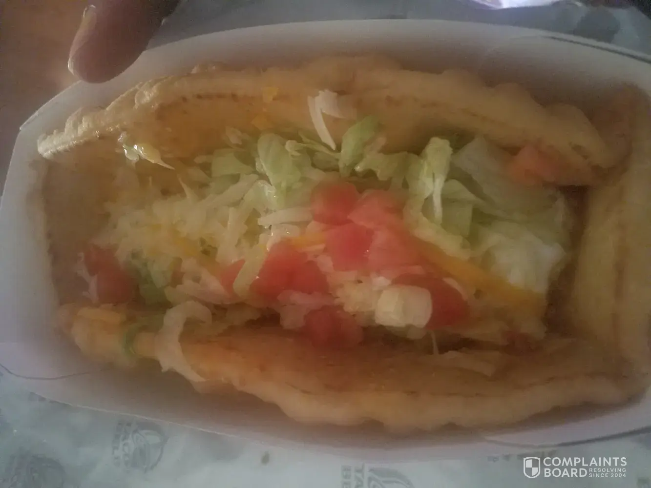 I bought a Taco Salad today, 9-14-18 from Toledo, ohio, 3265 Laskey rd, at 10:35 am.The Taco shell tasted like it absorbed some kind of chemical, mabe a cleaning fluid or mabe insect repellant, it tasted awful & didn't smell right either .I just wanted to let you know, my order # 300195.Thankyou, Patricia Mead 4415 Elmhurst Rd, Toledo, Ohio 43613