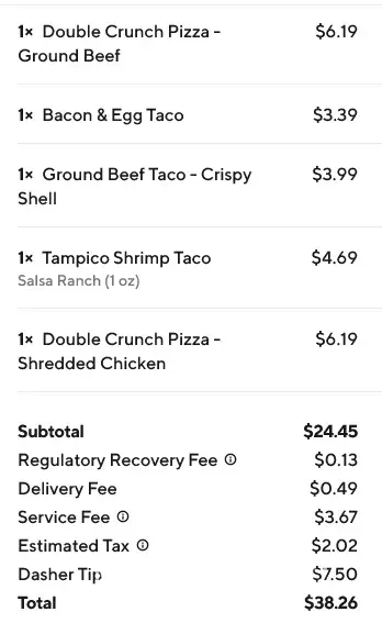 I need a refund for a delivery item, Bacon & Egg Taco $3.39 from doordash, picked up @ Taco Cabana 4313 South Fwy, Fort Worth, TX 76115, USA.