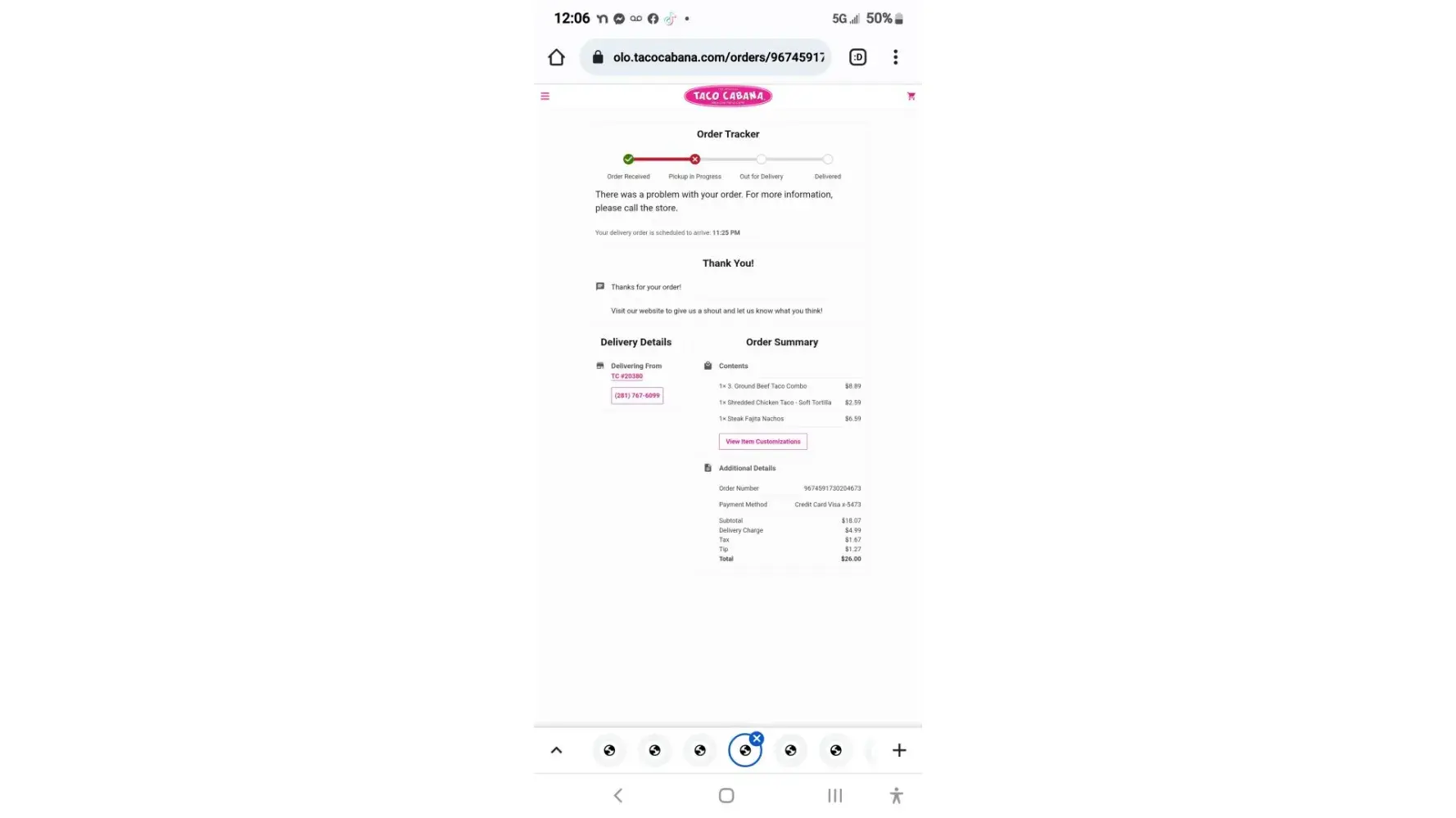 I stopped at a location in Dallas on my way home 15 minutes away from my home went they the drive thru got home and all my food wasn’t in the bag. I tried to call 6xs and no answer