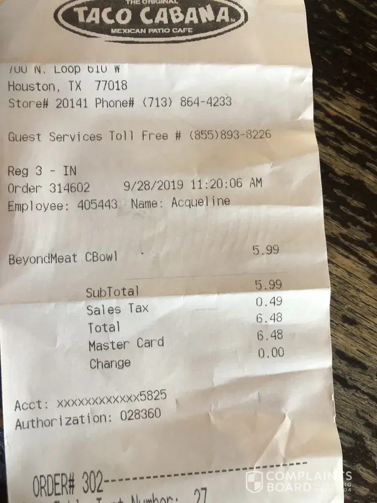 Read full complainttook 30 minutes to have my order taken. ordered 5 potato, egg, and cheese breakfast burritos.
