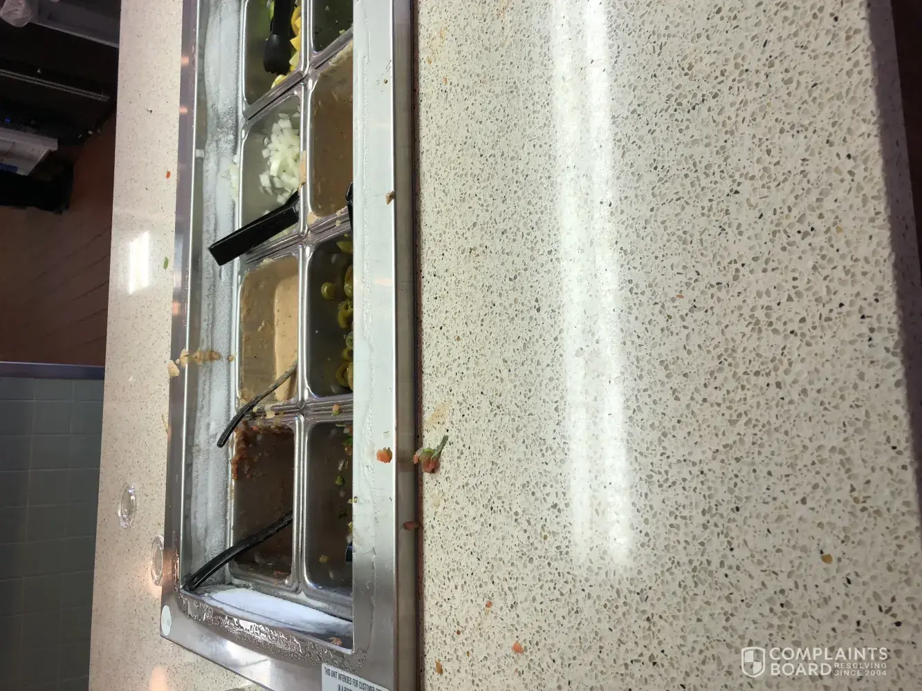The condiments bar was dirty and low, this was at 1:30 PM, Saturday. It looked like yesterday's left overs. Needed service. That's the main complaint I have, except delivery was slow and the tortilla I was served was cold and falling apart in the middle of my fajita.