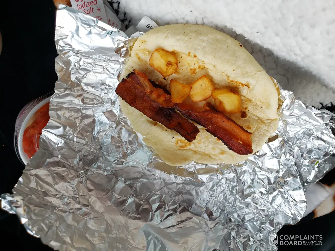 My husband and I ordered tacos and I ask for two tacos with bacons well done, I said almost burnt. We I received my tacos the bacons was half cooked, primarily raw, I took it back to the manager and she said it looked fine on the grill, I told her she must need glasses and to just give my money back. The manager was very rude before I made the remake and acted like she didn't do anything. I refuse to go to this location, that employee should not be working with food or having any type of customer contact