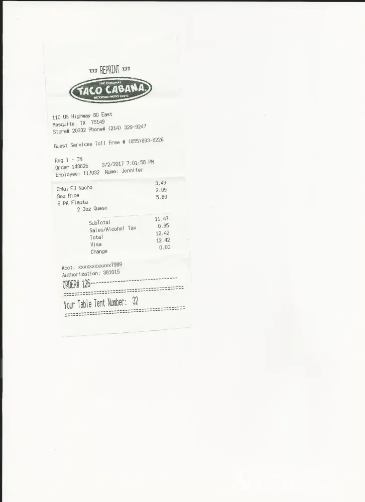 I stopped at the Taco Cabana at Highway 80 and Beltline road in Mesquite Texas last night (03/02/2017) 7:01pm after mowing a friends yard. Now mind you I haven't been back to a Taco Cabana since summer of 2016 due to this estblishment got our order wrong twice last year. The service attendant at counter in this Taco Cabana was very nice and courteous, i stated I needed it to go please and ordered chicken fajita nachos with beans, 8oz rice and 6 pack of flauta's with 2 queso's which came up to $12.42. After paying the attendant she asked me again if it was for here or to go, I stated again to go. There was a very nice and helpful attendant serving customers seated in the dining areas. She came out with my food in a very timely manner, looked at my table realizing I had a small sack with salsa I filled for to go. She asked this is actually to go right I said yes and told her I told the other attendant twice it was to go. When it was put together to go I checked it when I got home which was only ten minutes away and the food had been pitched into the to go containers. Didn't get the queso with the flauta's but did get some nasty guacamole and sour cream which I can't stand either of those. The food tasted very good but presentation sucked and evidently the front attendant's understanding of to go means dine in to her because that's what was put on my receipt. I won't return to taco cabana again.