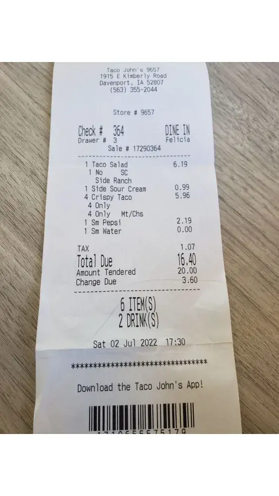 I have always liked the Tacos at your stores, except for the Clinton location. I always felt like the Clinton location was trying to "stick it" to its customers. Other customers I talked to felt the same as well and would use the nickname "Smear Tacos". They too quit going to Clinton Ia location or quit going to Taco Johns all together.