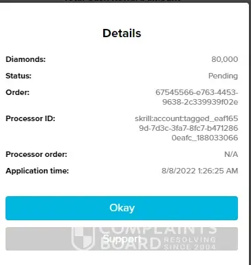So I had swipe an the money was taking but I got no goals my account was frozen it's not any more but still no goals an the money is gone from my Paypal card