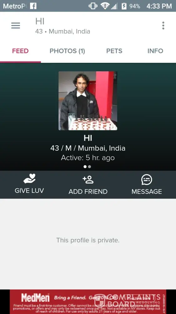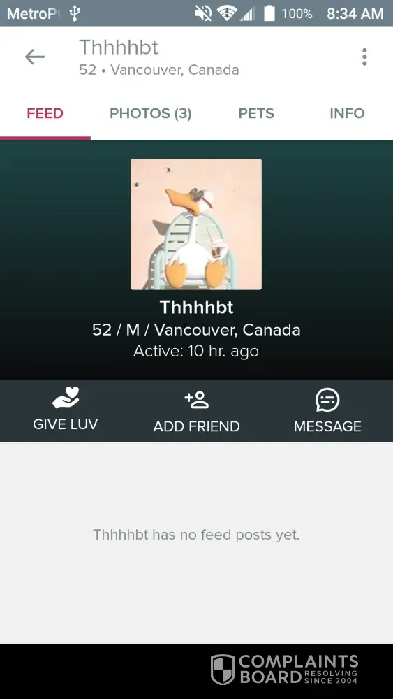 If you have the location or IP address of this fake profile or have any information you can give me, I'd like to request it.