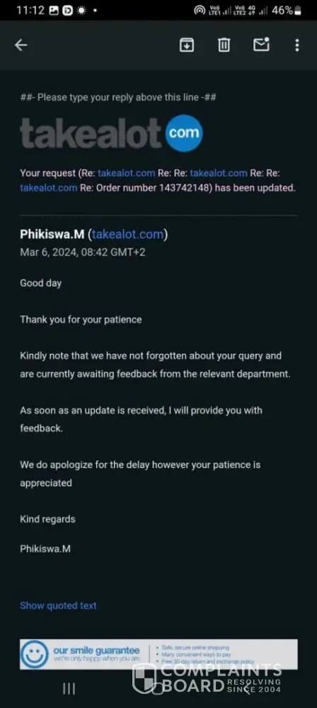 835 Takealot Complaints