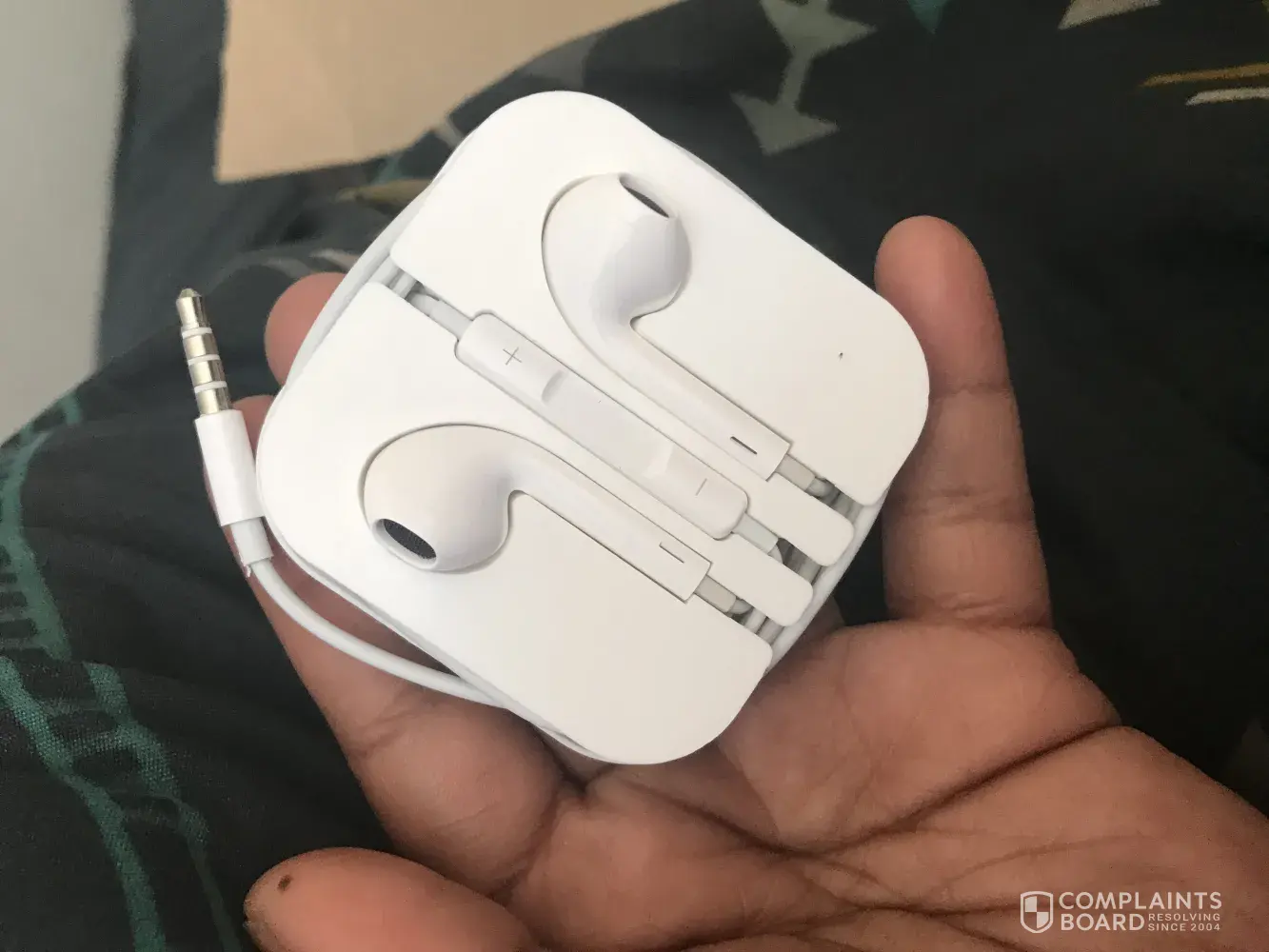 An iPhone USB cable and earphones