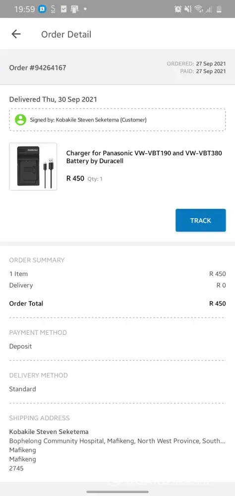 I tried to track my delivery again on the Takealot. app and it showed that my order was delivered and signed by me at 19:03. According to my knowledge nothing was delivered to me so I don't know wether to label this as a scam or poor service or dishonesty from Takealot's delivery team.