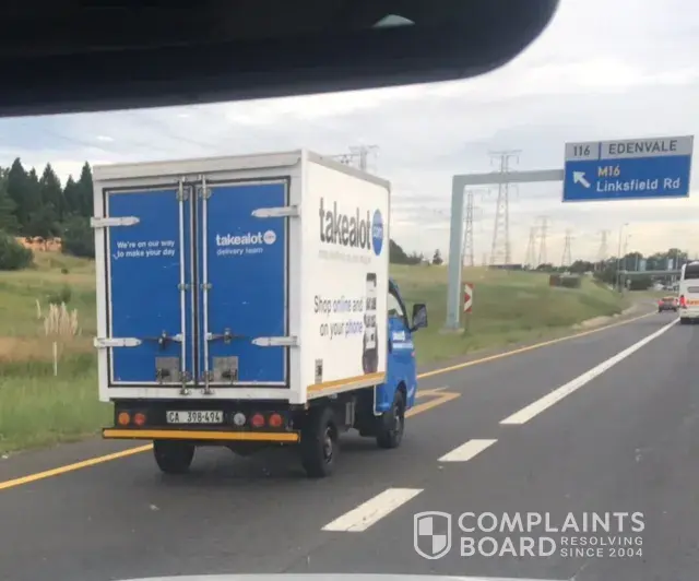 Last Thursday I was travelling on the N3 South in the far left hand lane before the Linksfield Road exit, where a Takealot vehicle suddenly appeared right at my rear with literally 1 metre space between the Takealot vehicle and my own. The driver then proceeded to try and pass on the inside (yellow emergency lane) which is highly illegal and very dangerous. He then continued to drive right up against my vehicle until I found space to move into the next lane to my right. He then drove at a high speed past me where I pressed my vehicle's horn to indicate and express my anger over his poor form of driving, where he then put up his hand and gave a "waved me off" gesture.