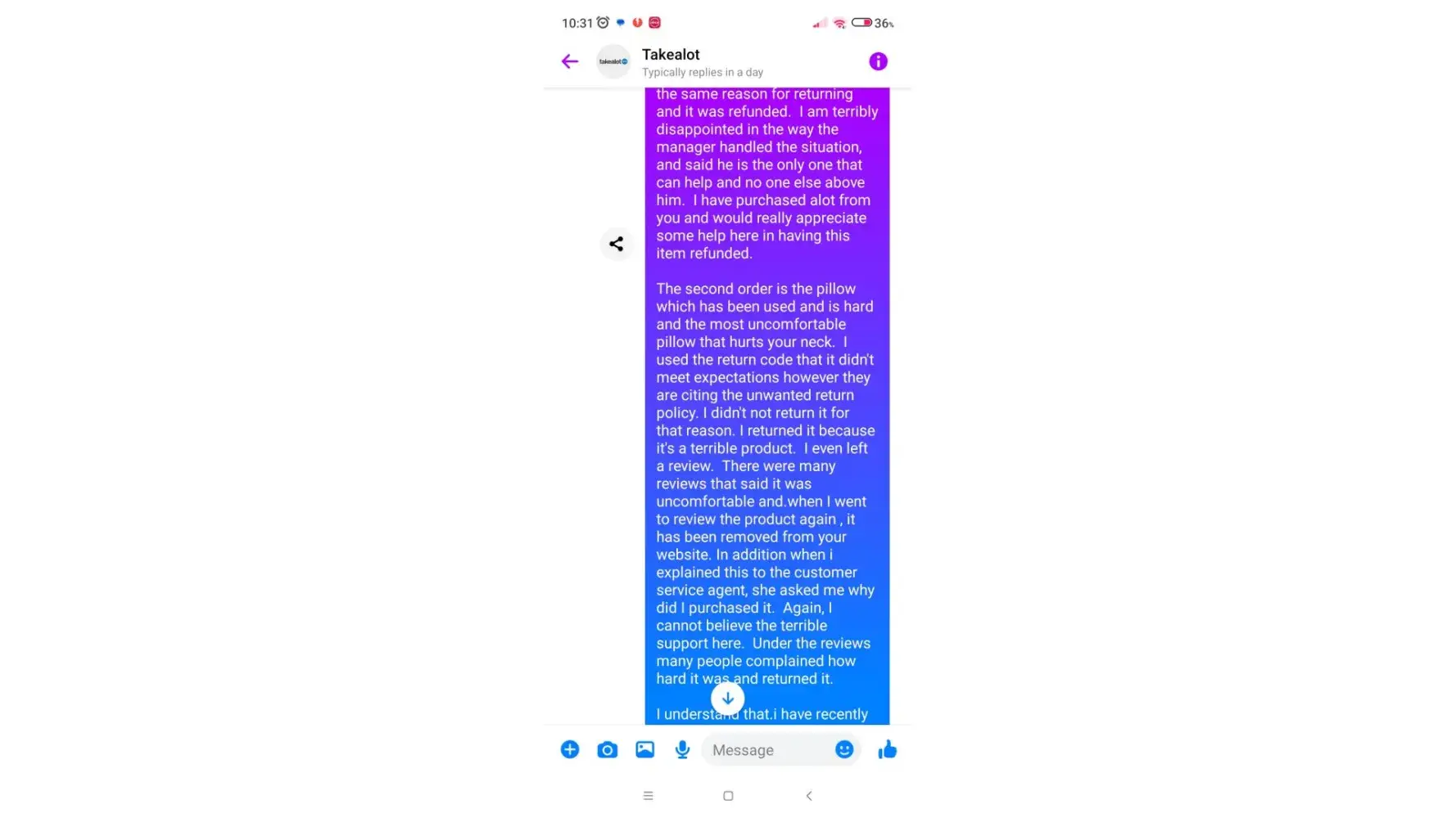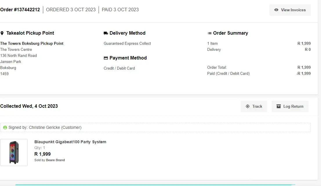 So yes, I scheduled the return because I spoke to Mr. ***********, and trust me when I say this, I was willing to spend money in the future and provide your company with continuous support from my side. But I promise you I will head and warn anyone who wishes to join Takealot to NEVER purchase from you again.