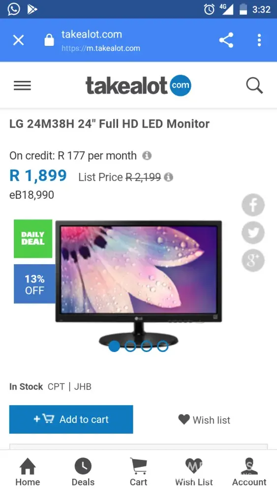 I cart it along with my other goodies and after paying I realize that I was charged R199 and not R169 as advertised- so naturally I think I missed the deal but go back to the deals page and voila- there is the same deal of this powerbank on special for R169 with only one left.