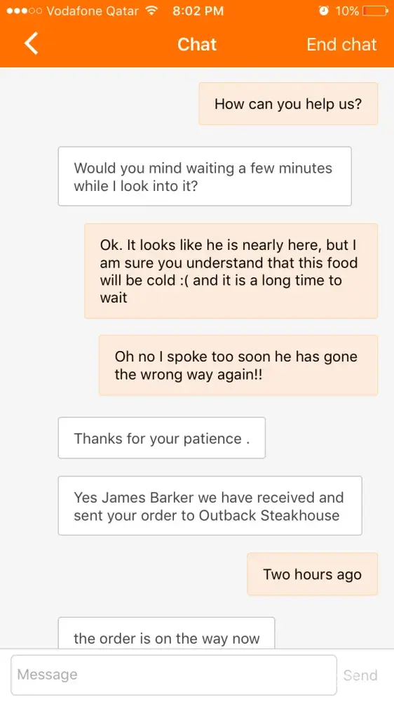 Is this type of people who talabat has in their live chat?pathetic this is the first ever arrogant irresponsible chat i had with talabat and hope they address it correctly