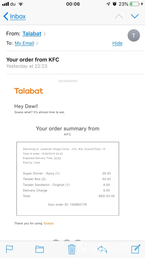 Now the nightmare from Talabat starts, guy called meged calls me with no clue and not even apologizing for the inconvenience but instead stating that he is trying to save my time after taking the ORDER and money from me and I told him to cancel and refund the money to my bank account which I used to pay.