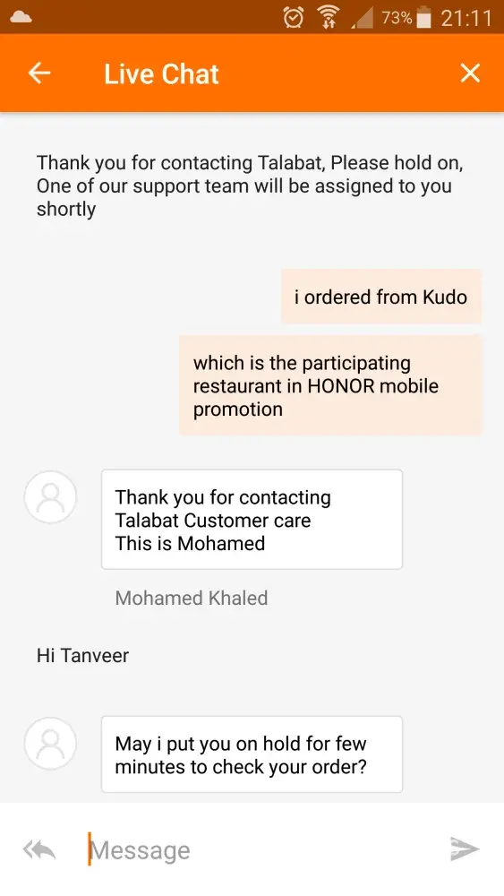 Talabat Middle East customer service and delivery
