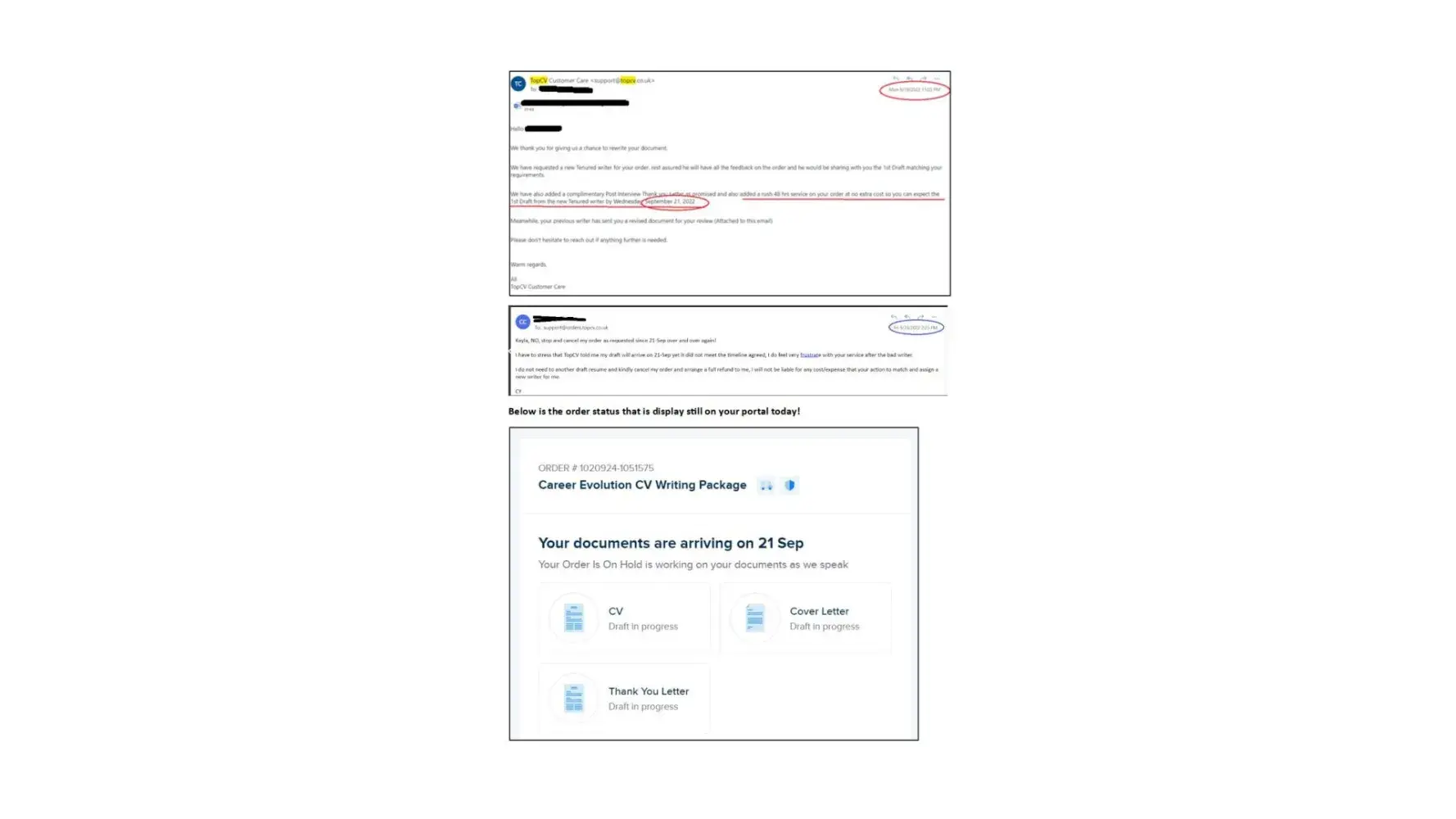 - TOPCV promised to match another writer who would come up another 1st draft on 21-Sep with a rush-order BUT it has never never happened. Then,