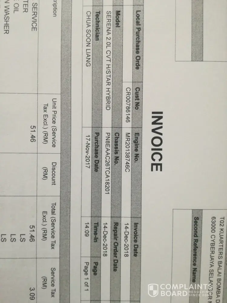 I send my nissan serena hybrid registration number vau 2640 at kota damansara service centre on 14/12/2018 at time 9.30 am for 20000km servicing. I came back at time 2.30 pm my car still not yet ready for pickup. Service advisor tell me the alignment machine have some problem. Only the tyre alingment and balancing not yet ready.. Service advisor inform around 3.15pm my car ready for pickup. So I just go up and waiting at lounge room.. From the lounge room, I see the technician jeck my car and start for service change engine oil and filter.. Why should be happen? Sale advisor not be honest to me. I pickup my car at time 3.30pm. Tq
