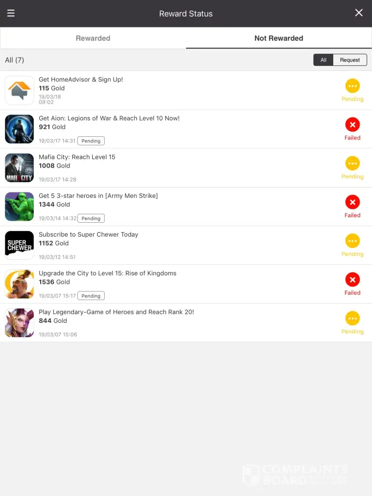 I completed an offer over a week ago that cost me money and have not received my reward for it. I feel that this is [censored] and it should not take this long to be rewarded when it required me to complete a purchase. And I have even received what I purchased in the mail already. The original reward was for 2099 gold and now it is for 4198. I feel that you should reward me with the double reward now. If not that is fine . But know that if I am not rewarded soon I will be in touch with a lawyer.
