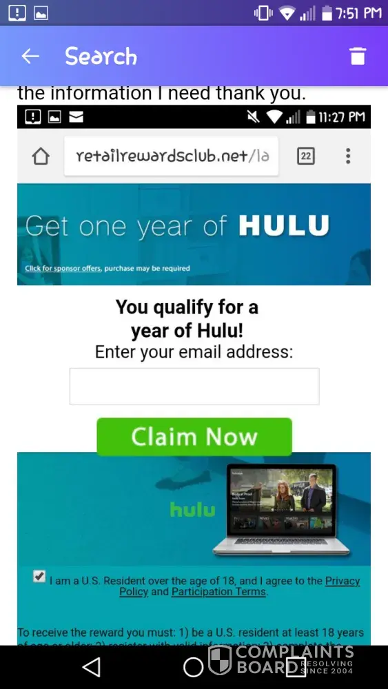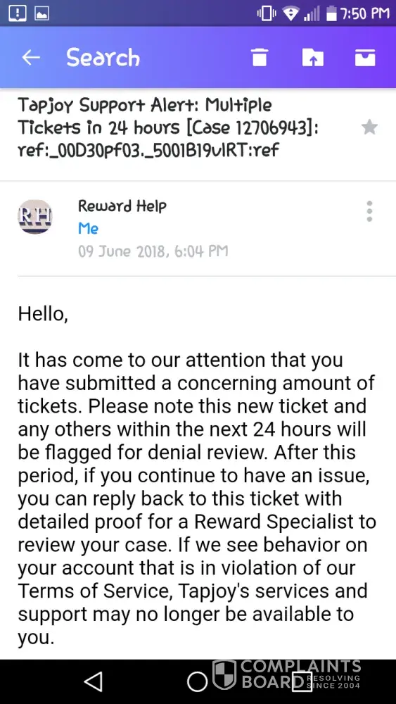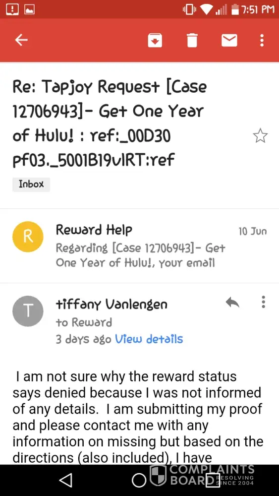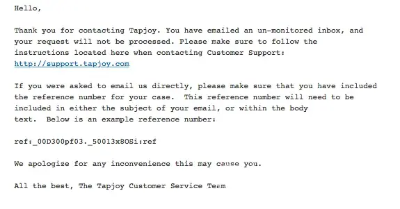 When signing up for Hulu and paying for it, Tapjoy promises to reward with diamonds and they literally make it impossible to obtain. When submitting a ticket only through the app for which you did the offer, you can no longer send an email, even if you have to submit proof of the purchase. So you are essentially stuck in a closed loop. There is no way to get a hold of customer service.
