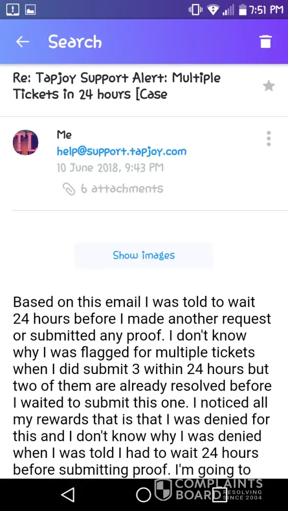 What makes me decided to file a complain here is because the lack of response to my requests thru your helpline ([protected]@support. tapjoy.com) as well as in Facebook.