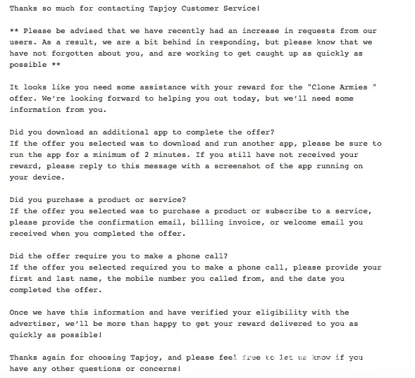 Customer service is nonexistent. Every time you submit a ticket to their support team, an automated message will pop up, telling you to provide screenshots and ‘proof' that you have completed the offer. Then you have to wait 2 weeks - 4 months for them to respond. Yes. 4 months. That's personally how long it took them to reply to my last big-scale offer, only to tell me that "the offer has expired and is no longer being rewarded."