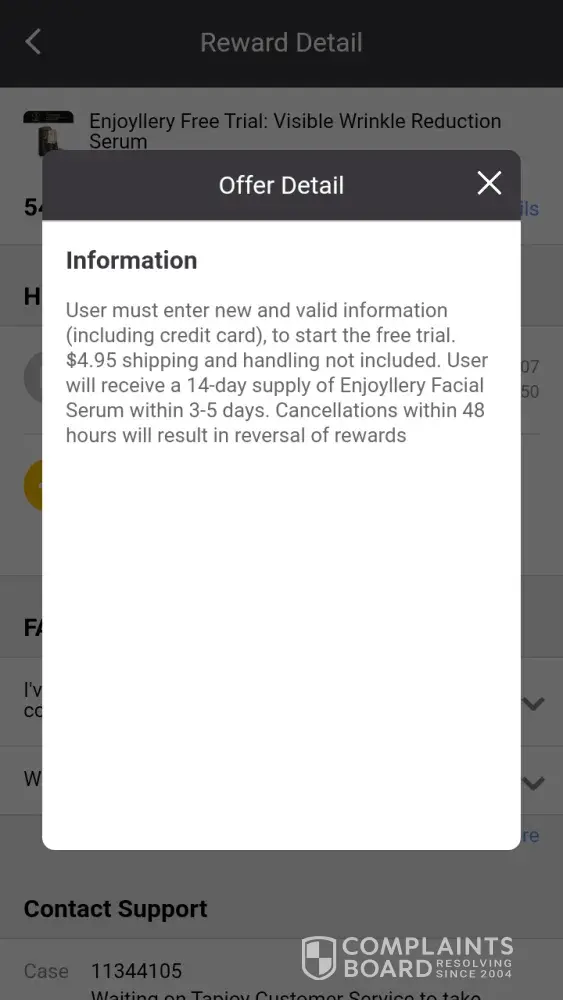Am pretty disappointed since my first TapJoy customer Service experience was actually quite positive (responded within a week, for a 10, 000+ gem reward for FFXANE to reach 100K Power) and I was hoping it wouldn't live up to the internet rumors. From the looks of it though it seems a LOT of people are getting scammed out of their time (and even money, if IAP is included) by completing these offers for no rewards.