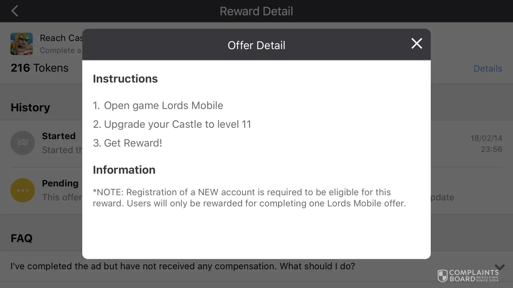 I already completed their offer to install lords mobile and reach castle 11. But they don't reward me. Already emailed them several times but never gets any reply. I even sent them the proof of progress. Then after 3days they sent me an email stated that my case has been resolved because they haven't heard from me. I was like wtf? Till now still haven't got any updates from them