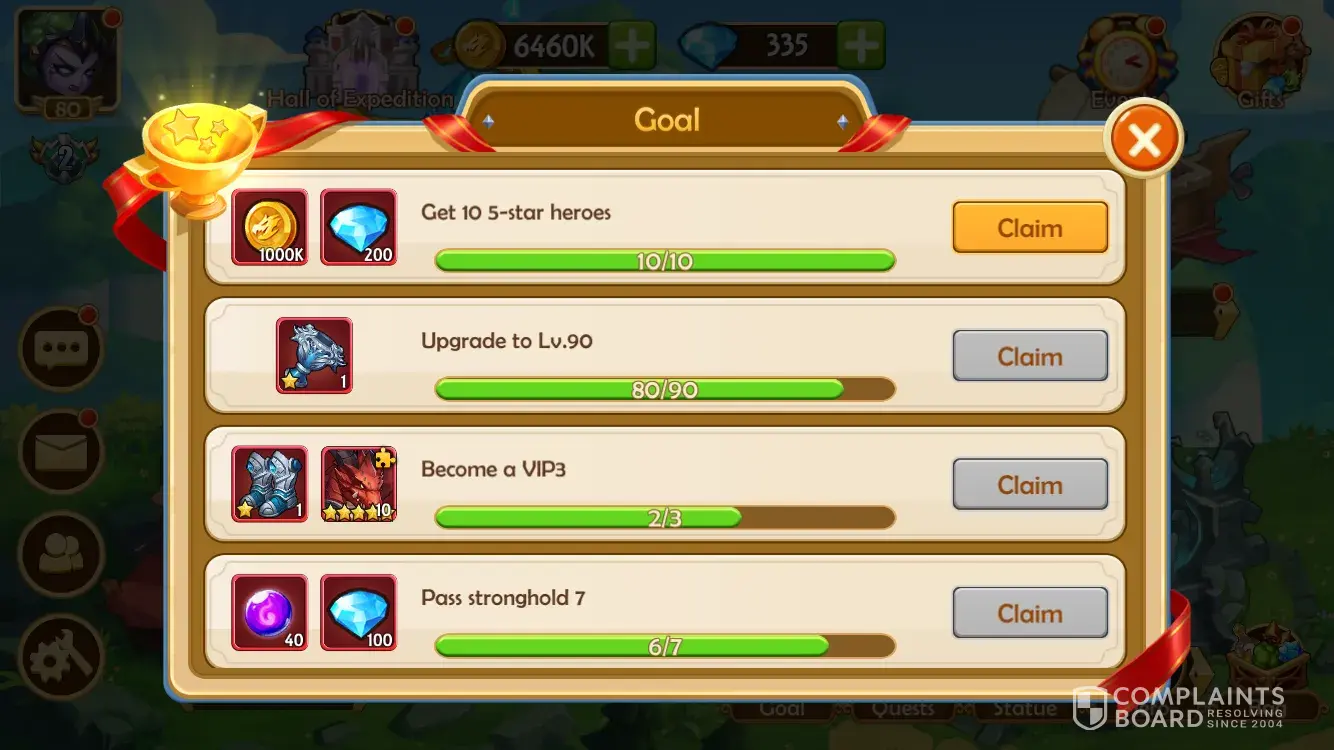 ЗдравÑтвуйте, почему Ñ Ð½Ðµ получила награду в бильÑрде, за прокачивание замка?