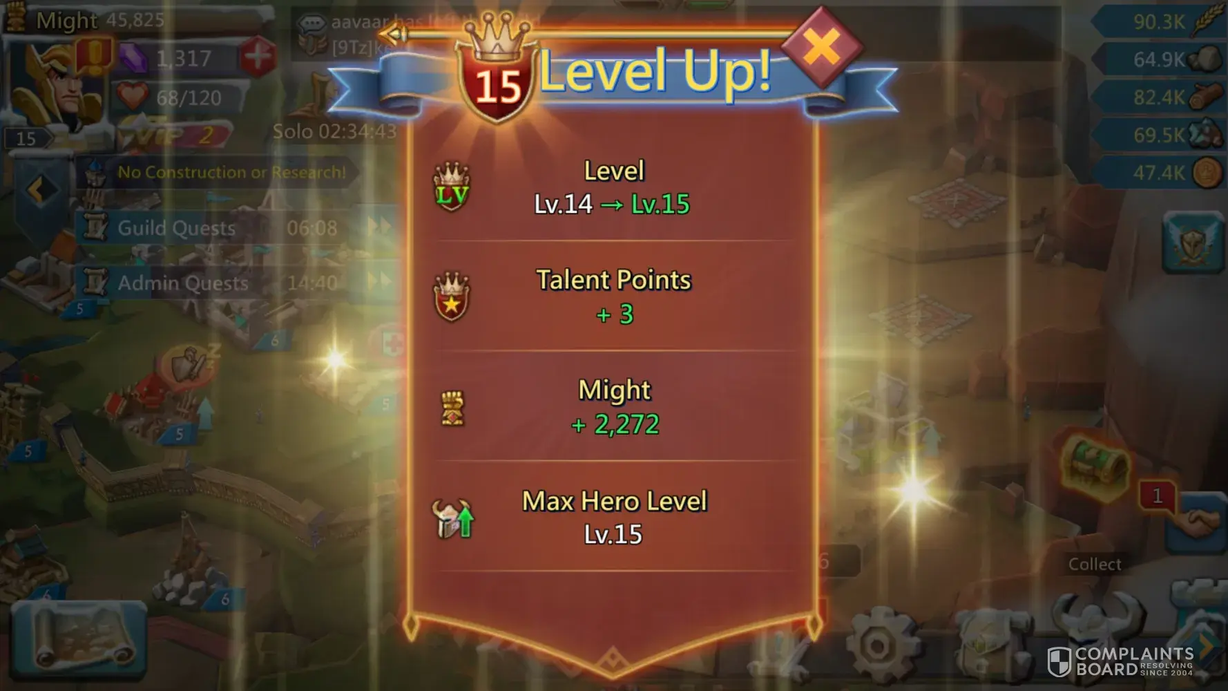 3. Reaching character level 15 in Lords Mobile (1836 pts)