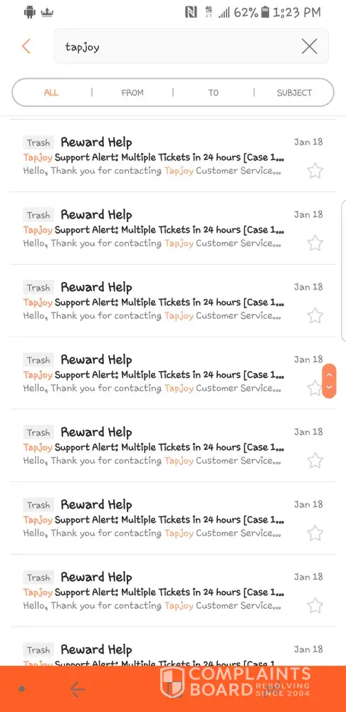 Mailing the adress help@support.tapjoy.com does not work, i got an automated reply from them thats an un-monitored inbox and theres no other way to email them, it would be nice if there was a working email adress.