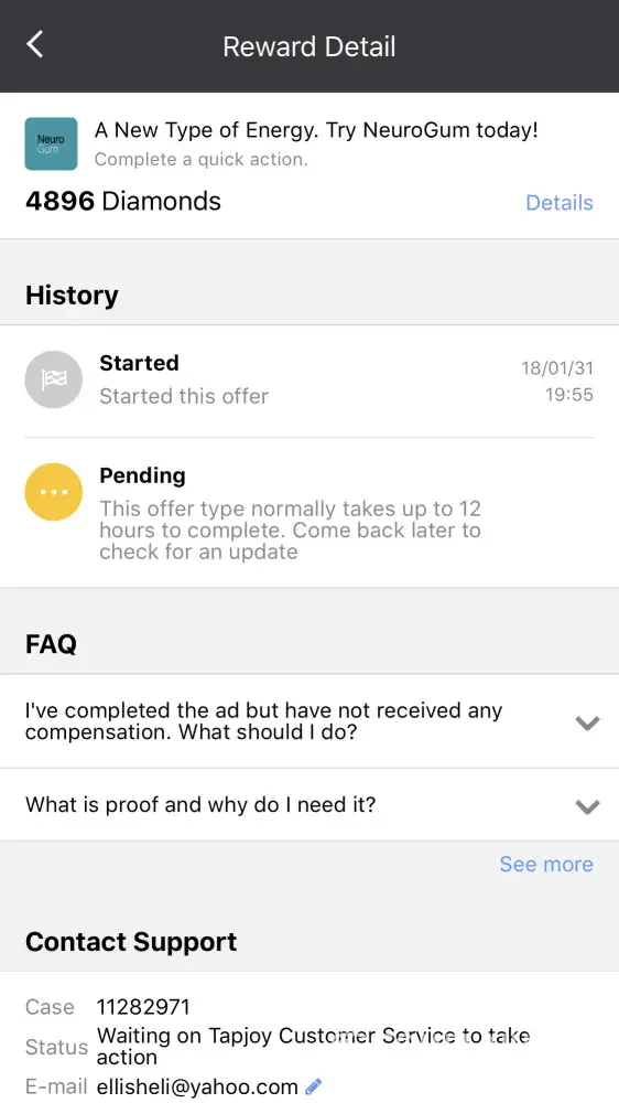 I tried to submit a case in the apps but it forever showed case submitted but no case id created or reply from Tapjoy. I have email tapjoy everyday since 7 Jan until 9 Jan 2017 however Tapjoy need a case ID which I wont have when the apps dont auto created one. : (