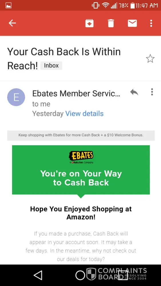 I competed an offer on design home to sign up for ebates and make a purchase. The purchase I made has been delivered but my diamonds have not. I submitted a request, got an email asking for screen shots which I sent immediately with no response after several days. I have submitted requests before and have been happy with how quickly the issue had been resolved, but not this time. I did my part and spent money. Now it's your turn to do your part. Thank you for your time.