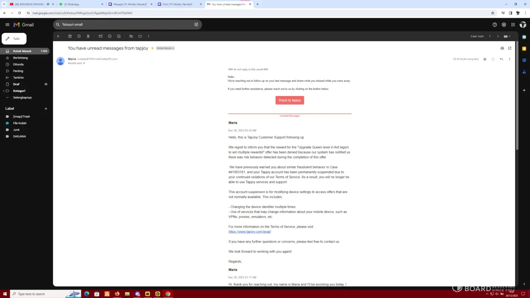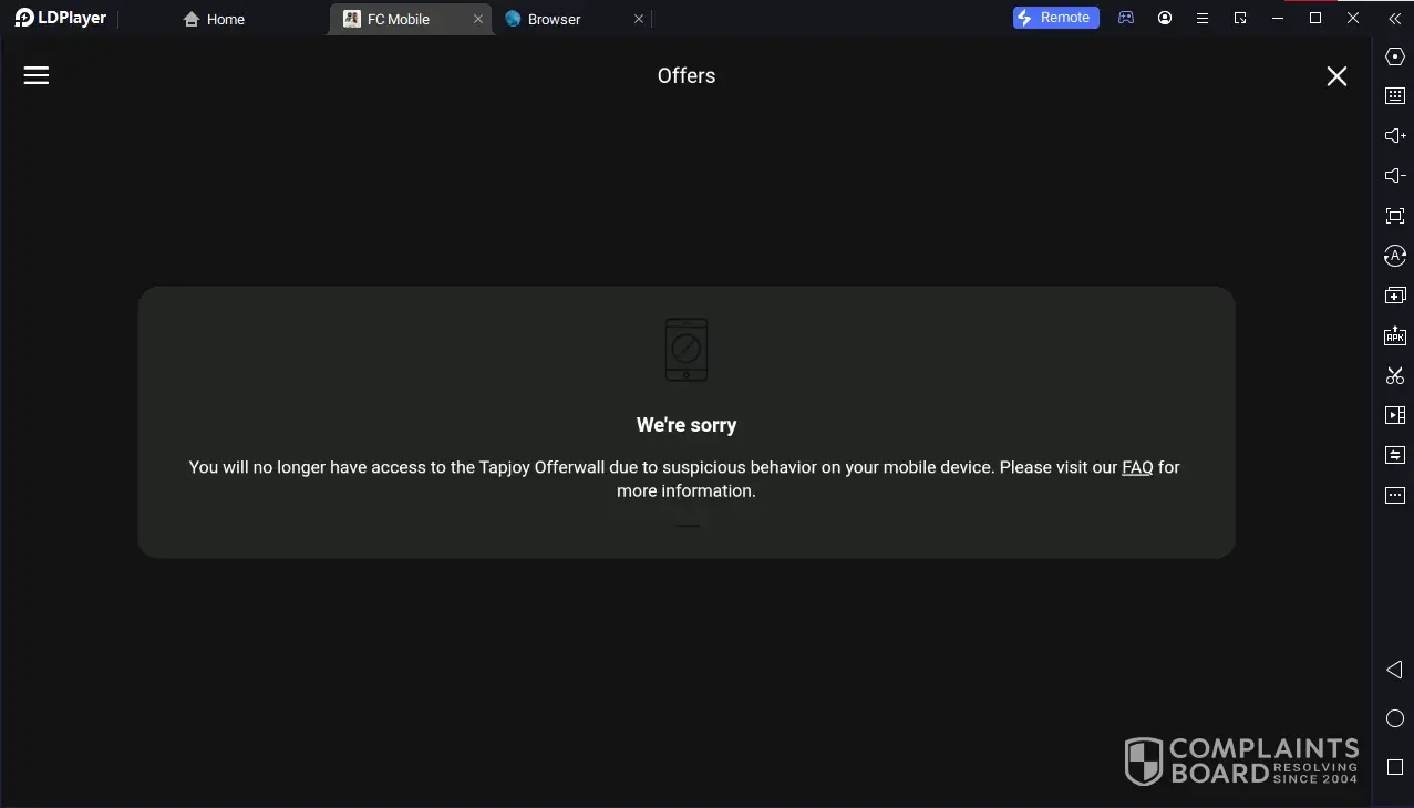 I wanted to appeal the closure of Tapjoy on the game "EA FC MOBILE" they closed Tapjoy's offer on my account because of indications of violations, but I didn't do that, I just reported the prizes that I had not received and sent them the original proof. but they closed my tapjoy account, please help