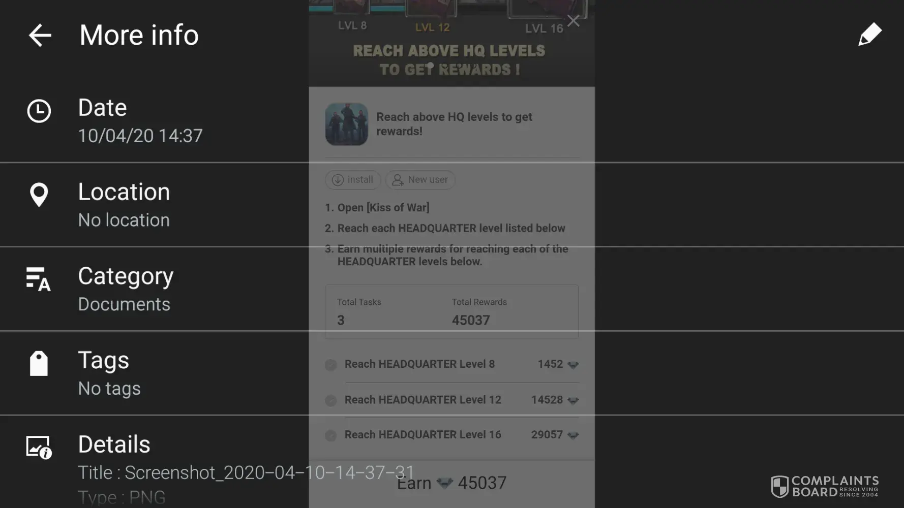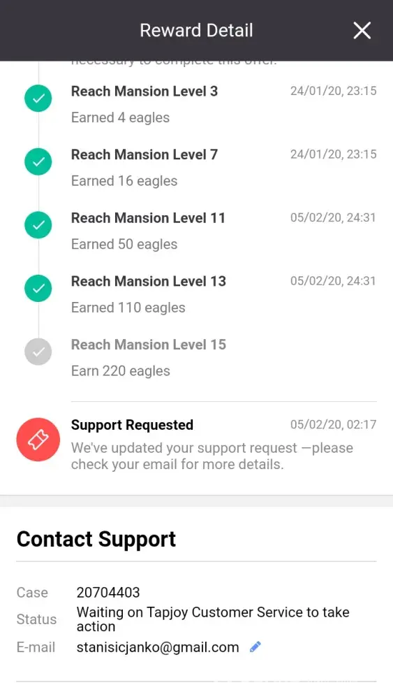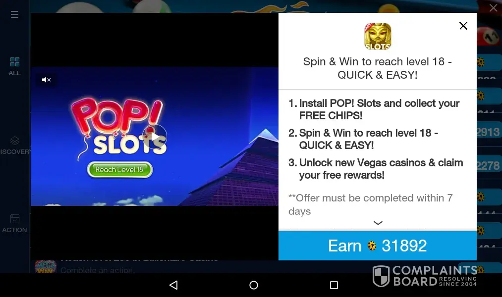 Desired resolution: Optimally I would love to receive the promised reward, but mostly I want this company to be accountable. They make money by of ripping app users off and its terrible.