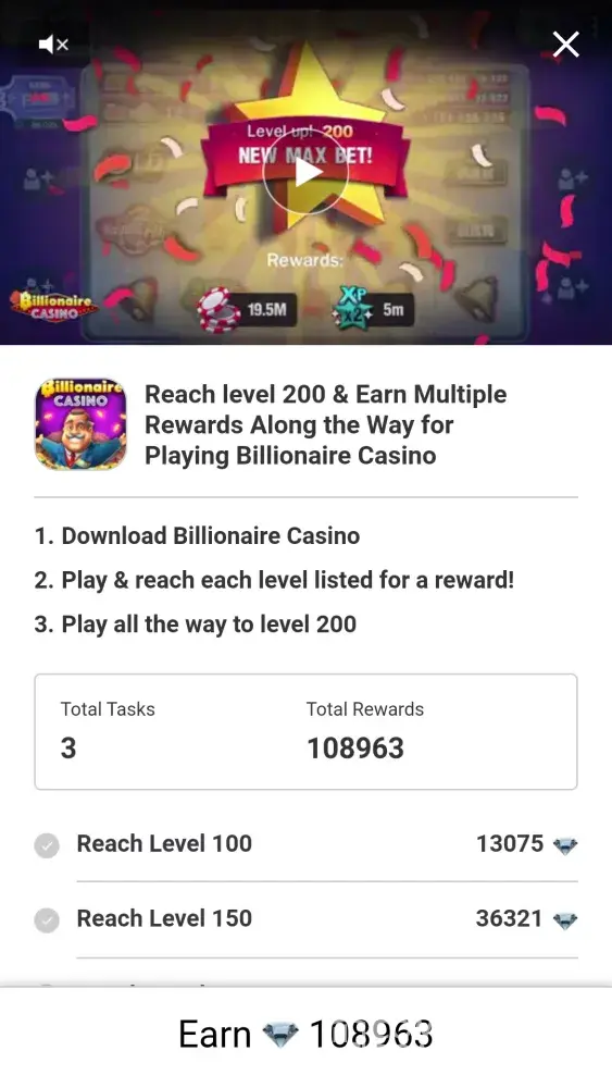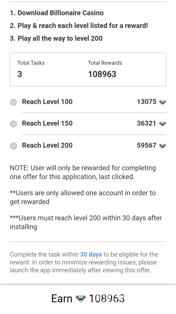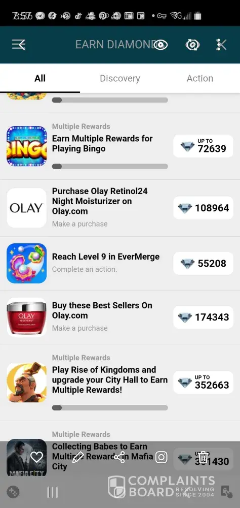 On several occasions, 7 in the last week, Tapjoy has failed to deliver diamonds for tasks completed. They have threatened to suspend my account, are condescending in their answers to me no matter how many screenshots I send them, and just very dishonest. They've corrected a few small tasks by giving me my diamonds I rightfully deserve but as of right now they owe me over 55k diamonds. Sending screenshots.