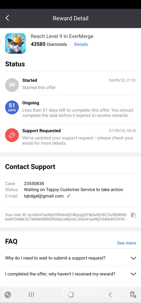 Kenneth (Tapjoy Rewards Specialist) explained to me that the advertiser had refused to reward me for the offer completed, but he was generous enough to give me a pretty large reward for the trouble I went through for this offer. Thank you so much Kenneth! I really appreciate the excellent assistance and my faith has been restored in Tapjoy! Problems may arise, but it’s really about how you resolve them. That’s how you take care of a good customer!