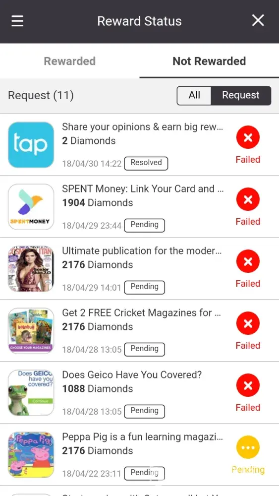 Three times I've ordered from Tapjoy, three times I've not received diamonds. What's up? Are we being scammed?