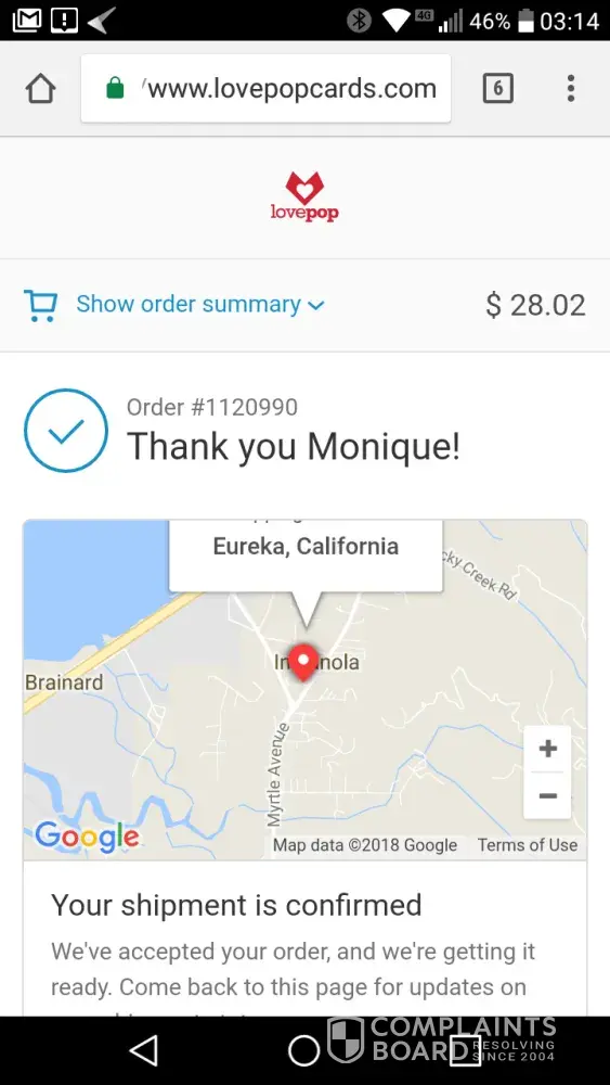 The complaint has been investigated and resolved to the customer’s satisfaction.