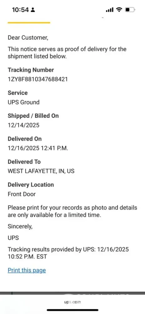 Jan 22 - 10:27 receipt/ tracking shows as delivered to warehouse