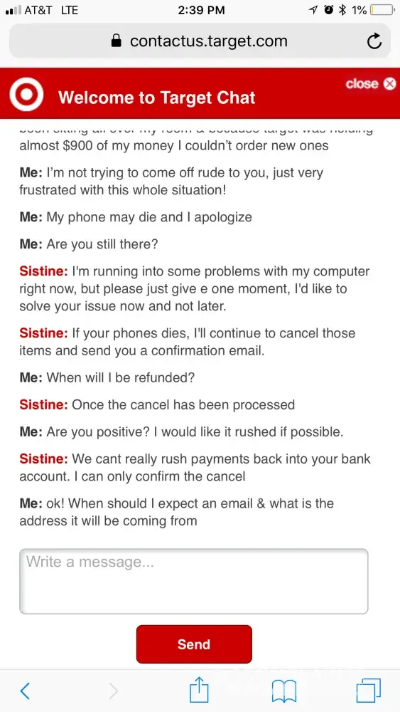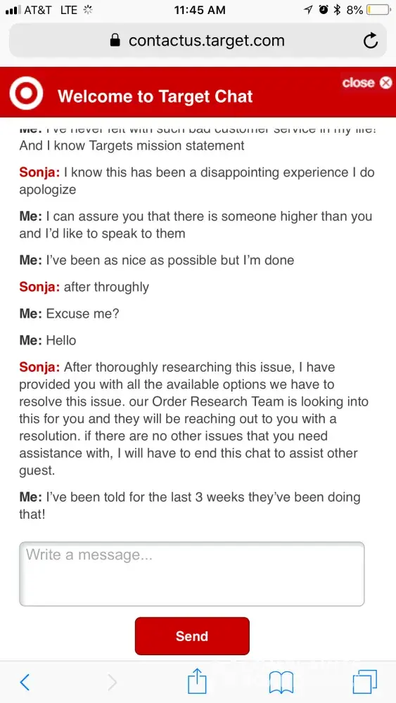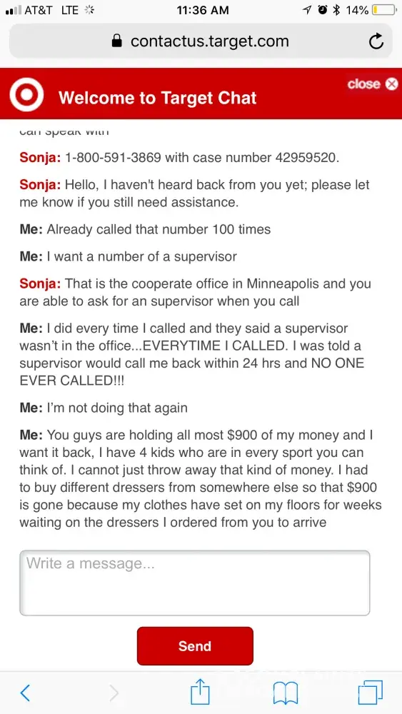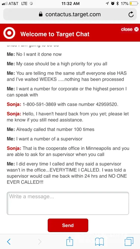 I would like to know what target would like to do for my frustrations? If you would like to reference a case number the last one I was given is #[protected]