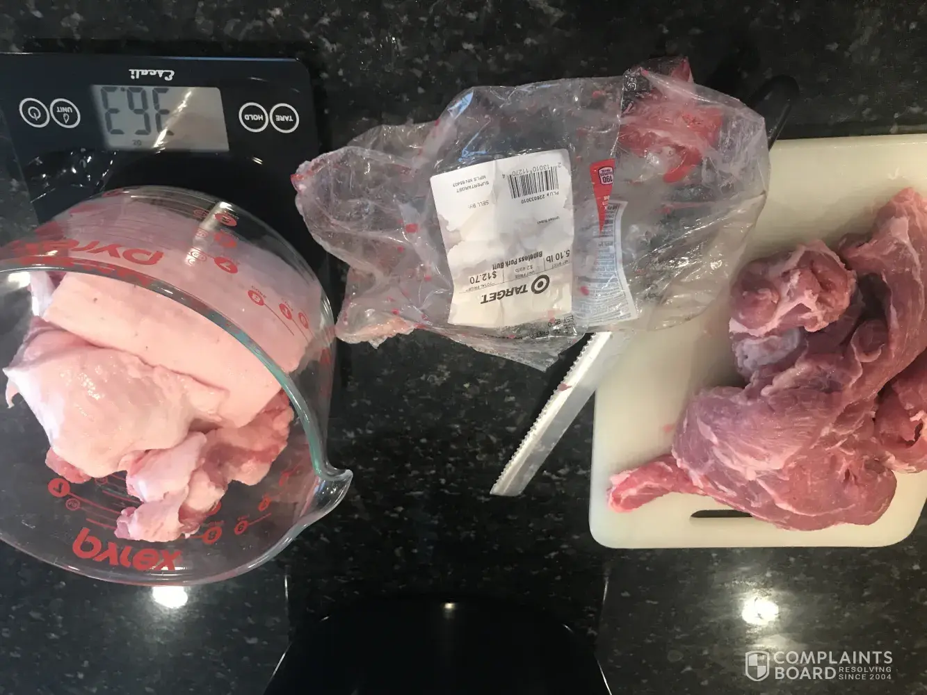 I purchased a 5 pound pork roast and trimmed off a "slab" of fat weighing 2-1/2 pounds. Once cooked, this 5 pound roast barely fed my family of 4. The roast was packaged in string mesh making it difficult to know how much fat was on this piece of meat. While I don't look to Target as specializing in high quality meat, I do expect that what I buy won't be poor value. This was very poor value!