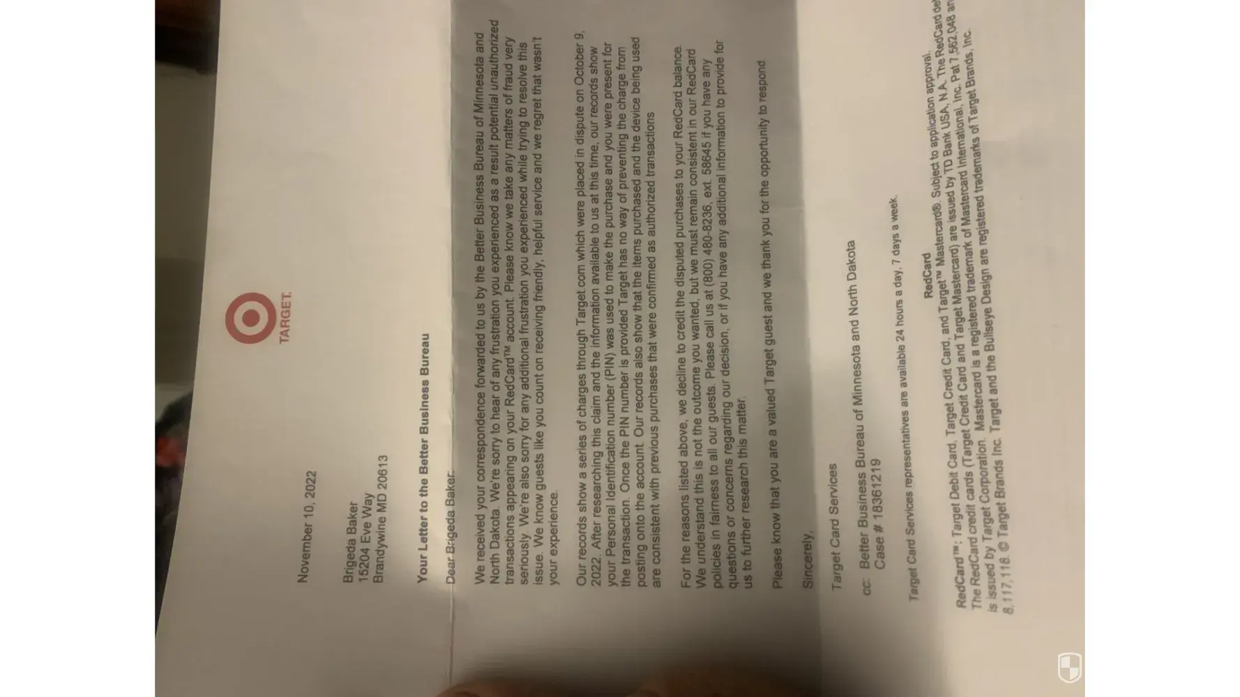 Desired outcome: I want every dime off that Target debit card that they are holding me responsible for.