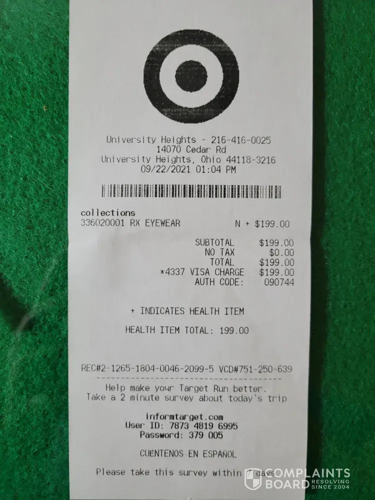 I made a purchase of prescription glasses at Target Optical in Cleveland, OH, with a total of $199 on 9/22/2021. First, they added a Worry Free Protection Plan of additional $35 and charged me $234, which I spotted AFTER they had swiped my Health Savings Account (HSA) debit card.