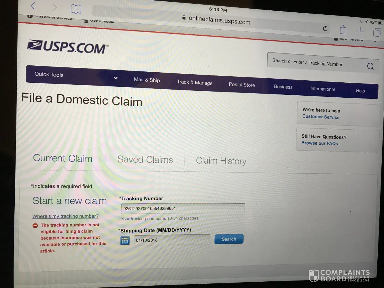 I placed an order online on 12/29/2017 and the tracking# states that it has been shipped on 1/10/2018. I called Tarte customer service and was told to contact my local usps to track my order or file a claim. I called the usps office and according to them it has been shipped and i told them that no i have not received it. They asked me to file a claim online on their usps website. When i tried to file a claim online with the tracking # it says this order is not insured thus not able to proceed!