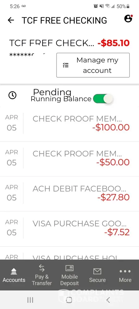 TCF Bank Overdraft scam