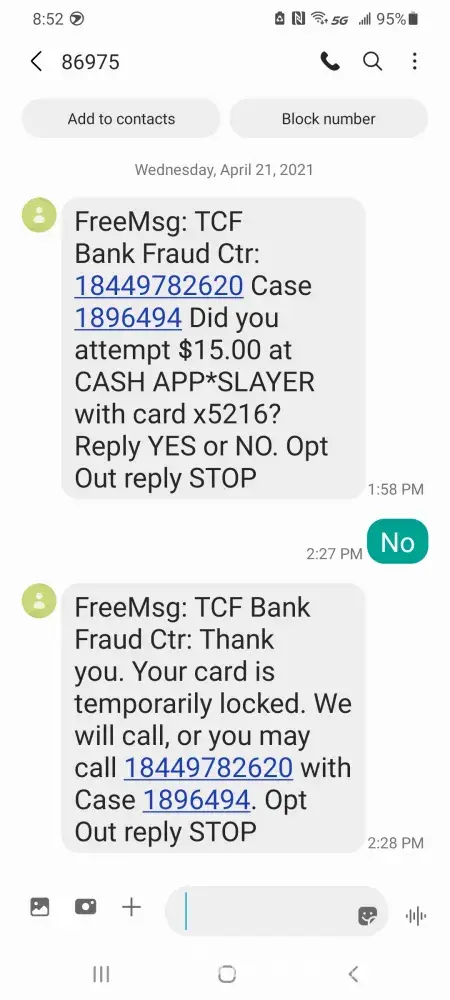 This is the second time my checking account was compromised. It was the ATM Card. The first time I took care of most of it myself. I did get a new ATM Card and changed my Pin. My recent incident this week. The branch on Wayne Rd .in Michigan there is a Male, I don't have his name, he had no name tag, but I believe he is the Branch Manager, he was very rude not just to me, but also to his Employee. I received a text message which looked legit from TCF bank stating fraud your card is locked did you make the purchase yes or no, I answered no. I received a call from a lady she told me to call Customer Service, which I did and did not have good experience with that either. The Gentian the bank telling me that TCF does not text, but he did that I a rude way, he also treated the Lady who was helping me very poorly. If TCF is not texting to Customers, he should have picked up the Phone and try to check in to this matter and I just found out one if my neighbors bank account was compromised. TCF used to be a good Bank. I don't know what happened. This Guy should be recommended, he is no fit in a Bank. He does not know what Customer Service or how to treat other Employees. Please feel free to contact me if you wish. Yes, I did get my money back, but I be not banking with your Bank any longer.