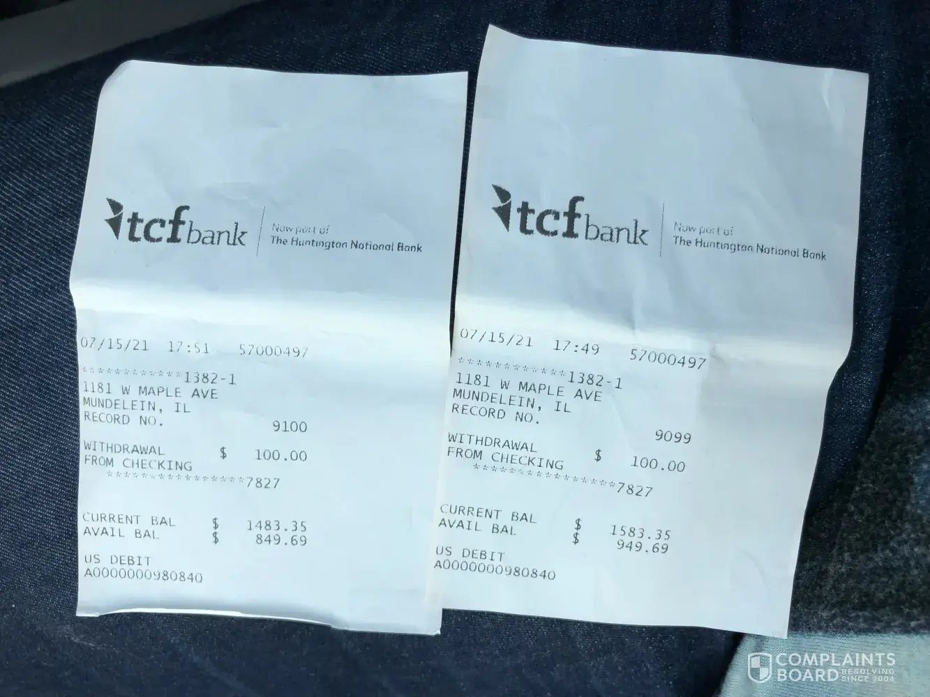 The very next day I went to my TCF bank home branch in Joliet IL and canceled $3, 000 in CD's I had with TCF bank.