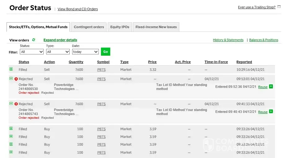 I've been a customer of TD Ameritrade since 2015, over 5 years. Over the years, I've made money and lost money. Unfortunately, I've lost more than I've made. In all that time, whenever I've had a loss that I was responsible for, I took the loss and moved on. I understand that you can lose money in the stock market. But on 4/12/2021, a strange thing happened. I purchased a stock on TD Ameritrade's website at 9:33 am, PBTS, and immediately after the purchase the price dropped. Darn, another loss. Oh well, I go to sell my shares and close my position. But nothing happens. I try to close my position again, the app just refreshes, takes me back to the sell screen and doesn't place the order. I do this a few more times but I keep getting the same thing. I jump over to the app on my phone to try and close and it just sits there loading. It won't allow the sale. I then jump back on the computer, pull up the Think or Swim app and try there but nothing. All this time the price is just dropping. Finally, after about 8 minutes, the order goes through on their website at 9:41 am. But the order's rejected. The price is still dropping. I try to close the position again but I get hit with the same thing that was happening before. The platform either kicks me back to the sell screen or the app just sits there. Finally after 12 minutes the sell order goes through again at 9:53 am. But again, the order to sell is rejected by TD Ameritrade. The price has dropped so low that I almost pass out. So again I keep trying and about 30 seconds later the third order goes through and TD Ameritrade finally allows me to close my position. It's now been over 20 minutes and I've lost a lot. I get TD Ameritrade on the phone and tell them the issue. A man by the name of Luke Hadley tells me that it's too bad but there's nothing they can do. I press them and they refuse to rectify the situation. Even though they see on their end that their system rejected my orders. So finally I get escalated to a man by the name of Jeffery Stezovsky. He says they'll agree to do a "price correction" and change my sell price to the price of my first rejection and says this will be done by a man named Nathan Maxwell. I tell them that this isn't good enough because my first rejection happened over eight minutes after I tried to close my position on three separate platforms. In that eight minutes, the price dropped over .27 cents. They tell me that they won't do anything more. I remind them that in the 6 years that I've been with them, I've never called and complained about any of my orders if I made money great, if I lost money then it was on me but in this instance, they're system prevented me from selling my shares and as result I get robbed by them. They said they see that but it doesn't matter. They said they can only go by the orders that show up in their system. I remind him that the two orders that they rejected were over 12 minutes apart and obviously I would continue to try and close my position during that time so something on their end must have been preventing me from closing my order all that time . They tell me that it's too bad. According to Mr. Stezovsky, they rejected my orders because they weren't able to sell all of the shares at the same price so they were afraid I'd lose money. But that doesn't make sense because if you reject my attempts to sell the shares while the price is dropping and don't even tell me the reason, then I will lose money anyway. Also, on almost every order where I purchase or sell shares at market price, all the shares don't get purchased or sold at the same price. They almost always fill my order at different prices. That's because I chose, Market Price and not Limit. They know this. If you buy or sell at market, then they will buy or sell your shares at whatever the market price is at the time of the purchase or the sale. That's always how it works. But for some reason today, they didn't want to sell at market because it would make me lose money so instead they rejected my orders so that I lose money? It makes no sense and it's clear that TD Ameritrade has worked to rob me. I want my sell price corrected to the price that I tried to sell it at the first time and then I'll take my money and leave TD Ameritrade alone. TD Ameritrade knows that timing is very important when trading and all the time it took me to navigate their failing system resulted in a huge loss for me but a big gain for them. And again, this was because they're system was glitching so I shouldn't be penalized for their error. First the system wouldn't allow my order to go through and when it finally did allow it, they system canceled the orders on it's side and all that time, while their system was malfunctioning, I was losing my money to them.