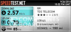 Sure wish we had poor service from TDS -- that would be a major improvement! Tonight (06/09/2014) download of 1.26 Meg. Two dixie cups and string would work better! We're paying for 16M download.